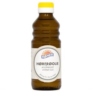 Denne økologiske linfrøoljen er kaldpresset og tappet på flaske i en oksygenfri atmosfære. Produktet har et høyt innhold av omega-3-fettsyre, som er viktig for mennesker å få i seg gjennom kosten da kroppen ikke kan produsere den selv. Rømer Linfrøolje er et godt alternativ til klassisk fiskeolje, da produktet enkelt kan brukes sammen med andre matvarer. Linfrøoljen har en søtlig, nøtteaktig smak som ikke er veldig sterk.