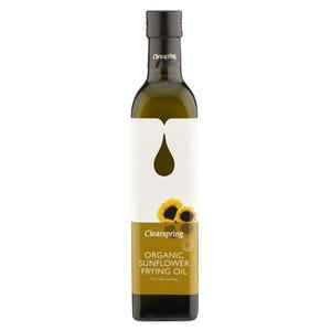 Clearspring Økologisk Solsikke stekeolje er en av de få kaldpressede oljer på markedet som egner seg til steking og fritering.