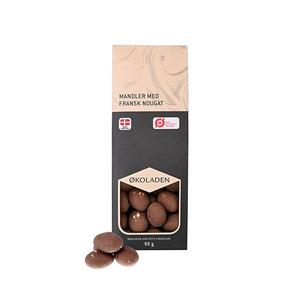 Økologiske, ristede mandler med melkesjokolade og fransk nougat