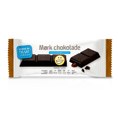 Mørk Sjokoladebar med saltkaramellfyll fra Easis - en velsmakende snack uten tilsatt sukker