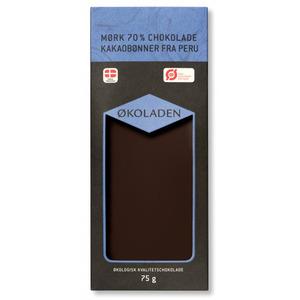 Den mørke sjokolade fra Økoladen er en klassisk, kvalitetsrik og økologisk sjokoladevariant fra det bæredyktige firma. Platen består av en helt enkel og ren mørk sjokolade. Den mørke sjokoladen er laget på 70% kakao, og tilføyer en kraftig og delikat sjokoladesmak til platen, uten at smaken blir bitter. Kakaobønnene som gir platens dens gode smak, er høstet i Peru.