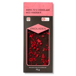 Mørk sjokolade med bringebær fra Økoladen er en lekker økologisk sjokoladevariant fra det bæredyktige firma. Den mørke sjokolade er laget på 72% kakao for en kraftig og delikat sjokoladesmak, og komplimenteres av det syrlige element som bringebærene bidrar til sjokoladen. De tilsatte frysetørkede bringebærene gir et deilig friskt pust til den rike sjokoladeen, og det ferdige produktet blir en skjønn smaksopplevelse.