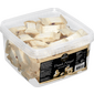 Fransk Nougat fra Nordthy er den gamle klassikeren slik du kjenner den! Du får den deilig seige konsistensen med den søte smaken, men her tilsatt peanøtter og kandisert frukt. Den franske nougaten er individuelt pakket i små kvadratiske biter som enkelt kan serveres pent på et fat eller bare spises direkte av boksen – som er stor nok til å dele med hele familien!