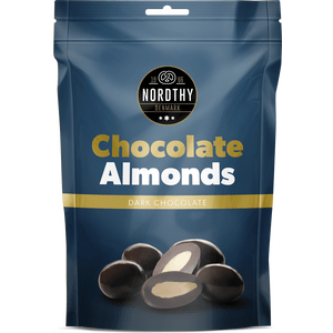 Elsker du mandler? Og kan du ikke få nok av sjokolade? Så er disse sjokolademandlene fra Nordthy akkurat noe for deg! Mandlene er overtrukket med mørk sjokolade og gir en himmelsk smaksopplevelse som de fleste vil nyte til fulle. Mandlene kommer i en fin pose som kan stå selv og som har en smart lukke-funksjon.
