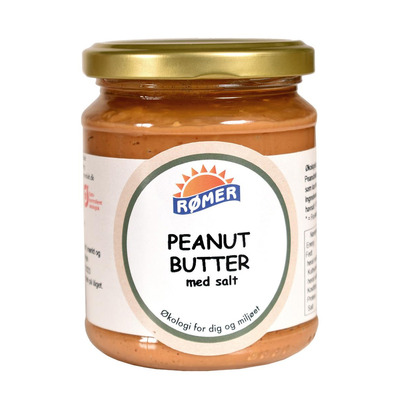 Rømer Peanøttsmør med havsalt Ø er økologisk peanøttsmør med en lett salt smak