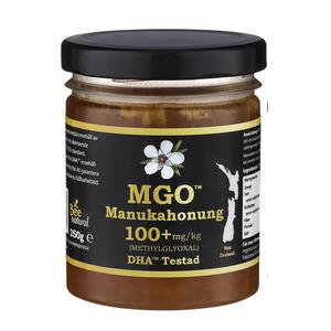 MGO® Manuka Honey 100+ inneholder minst 100 mg/kg metylglyoksal. Den kommer fra New Zealand og er resultatet av et unikt samspill mellom bier og myrteplanter.