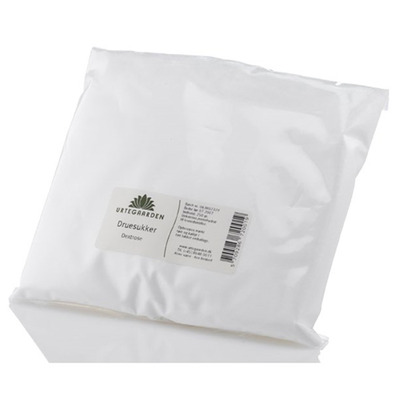 Urtegaarden Druesukker er et pulver med en relativ søteevne på 0,6-0,7.