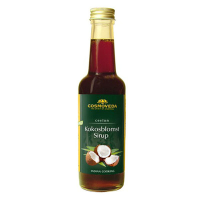 Cosmoveda’s Kokosblomst sirup består av saft utvunnet fra økologiske kokosblomster. Den aromatiske, mørke sirupen kan brukes som søtning i dine desserter, drikke og matretter. Kokossirup kommer fra Cosmoveda’s økologiske prosjekt i Sri Lanka.