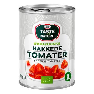 Taste of Nature Chopped Tomatoes er laget av økologiske, solmodne tomater som er klare til bruk. Disse hakkede tomatene er en klassisk kjøkkenhelt som tilfører rik smak og saftighet til rettene dine på en enkel måte. Ideelle til pastasauser, gryteretter, pizza, supper og mye mer. Disse hakkede tomatene er allsidige og uunnværlige i matlagingen din.
