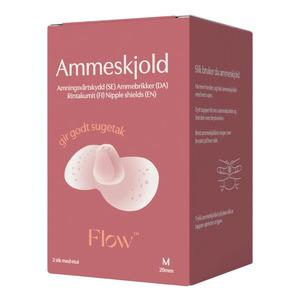 Flow silikon ammeskjold er utviklet for å beskytte ømme eller skadde brystvorter under amming, samtidig som de sikrer at barnet får godt tak. De er laget av ultratynn, gjennomsiktig silikon og har en sommerfuglform som sitter godt på brystet. Formen gjør at babyen kan kjenne mammas hud og duft, noe som bidrar til hud-mot-hud-kontakt og naturlig tilknytning.