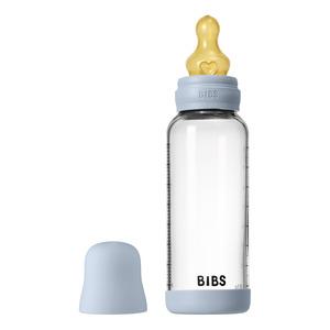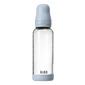 BIBS Babyflaske i glass rund lateks 240 ml. Medium Flow Baby Blue er en trygg og varmebestandig tåteflaske