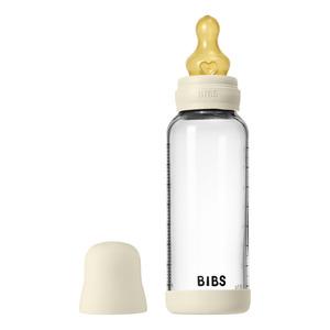 BIBS Babyflaske i glass rund lateks 240 ml. Medium Flow Ivory er laget av borosilikatglass og naturgummilateks