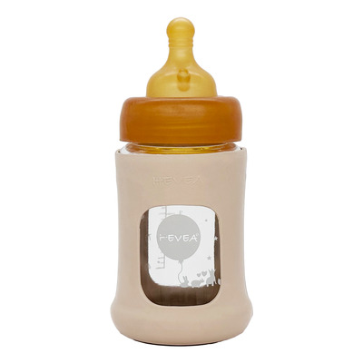 Hevea Wide Neck Glass Baby Bottle i fargen Sand har en kapasitet på 150 ml og er ideell for mating av babyen din.