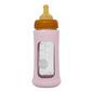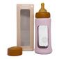 Hevea 250 ml Wide Neck Glass Bottle har en supersøt rosa hylse som gjør flasken sklisikker og beskyttende.