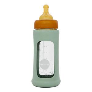 Hevea Glass Tåteflaske Wide Neck med Sleeve 250 ml, Seafoam Blue - 1 stk.