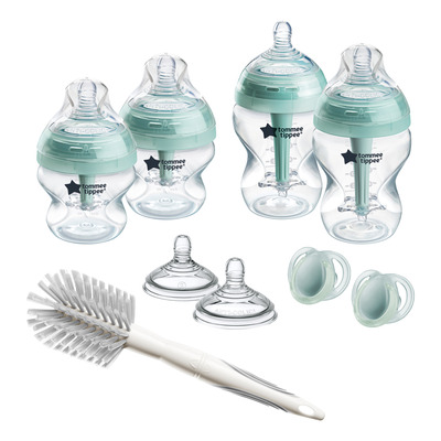 Tommee Tippee Anti-Colic Baby Bottle Starter Set for nyfødte er et komplett sett med flasker, smokker og flaskestartbørste
