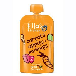 Inneholder kun 68 % økologiske epler, 22 % økologiske gulrøtter, 10 % økologiske pastinakker og litt økologisk sitronsaftkonsentrat.