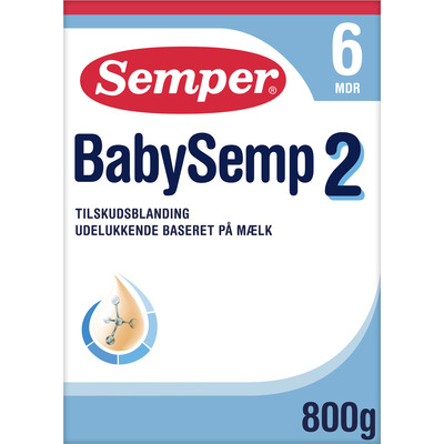 Semper BabySemp 2 er en tilskuddsblanding utviklet for barn fra 6 måneder. Den inneholder det prebiotiske kostfiberet GOS (galaktooligosakkarider) og viktige næringsstoffer som jern, vitamin D og jod. BabySemp 2 inneholder 1,0 mg jern per 100 ml premiks, noe som er viktig for oksygentransporten i blodet. I tillegg inneholder produktet 1,5 µg vitamin D per 100 ml, noe som betyr at barn som inntar 800 ml eller mer BabySemp 2, ikke trenger ekstra tilskudd av vitamin D. Hvis du er i tvil, bør du rådføre deg med helsepersonell.