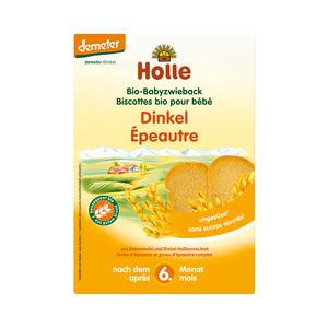 Disse knekkebrødene fra Holle er bakt med 83 % speltmel og 11 % fullkornsmel av spelt, begge fra økologisk og biodynamisk landbruk. Kjeksene er gode for barnet å gnage på når det får tenner og stimulerer tyggemuskulaturen. De egner seg også godt til å lage en velsmakende grøt ved å bløtlegge dem i melk eller annen væske. Holles tvebakker kan gis til barn fra 6 måneder.
