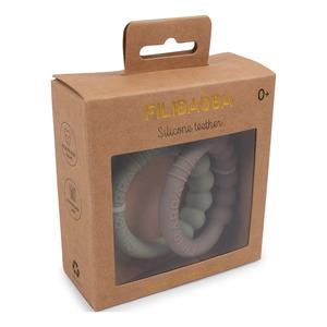 Filibabba Bitering i silikon 2-pk i Warm Grey + Oil Green - hjelper babyens ømme tannkjøtt