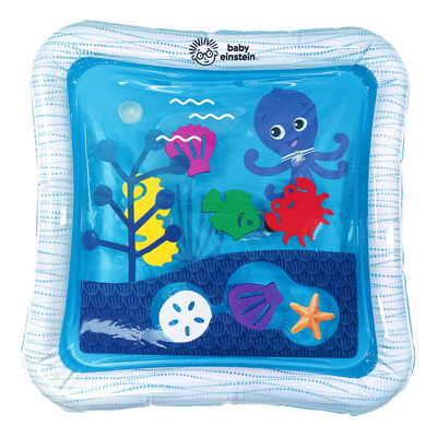 Oppdag havets undere med Baby Einstein Opus Ocean of Discovery Water Playmat. Denne innovative leken er utviklet for å stimulere barnets utvikling og nysgjerrighet. Det er bare å fylle midten av lekematten med vann og ytterkanten med luft for å skape en interaktiv opplevelse. De seks flytende figurene og formene under vannoverflaten vil fascinere og underholde, samtidig som de fremmer muskelutviklingen under magestunder og sidelek.