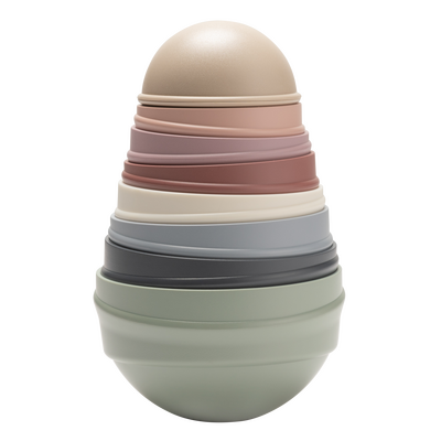 BIBS Wobbly Tower tilbyr uendelige muligheter og bare fantasien setter grenser! Leketårnet er enkelt å stable og kan brukes i både vann og sand. Hver del er laget med små hull i forskjellig størrelse, som gjør at vannet renner ut i ulik hastighet. Den stimulerer babyens sanser med skranglelyder og forskjellige teksturer når babyen tar på den. Dette er med på å utvikle barnets finmotorikk.