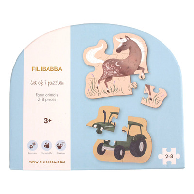 Filibabba-sett med 7 puslespill - bondegårdsdyr byr på lærerik lek og utfordringer