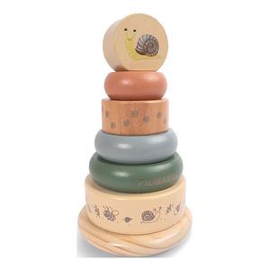 Filibabba Stabeltårn i tre er et leketøy som utfordrer balanse og motorikk. Med sine seks treelementer inviterer stabletårnet de små til å utforske og eksperimentere med høyder og former. Den unike designen med en fleksibel kjerne gir ekstra stabilitet, mens den avrundede basen gir en morsom svingende effekt under lek. Den morsomme snurrebassmetoden gjør leken til en fornøyelse å leke med, og den sjarmerende snegleillustrasjonen setter et søtt preg på leken.