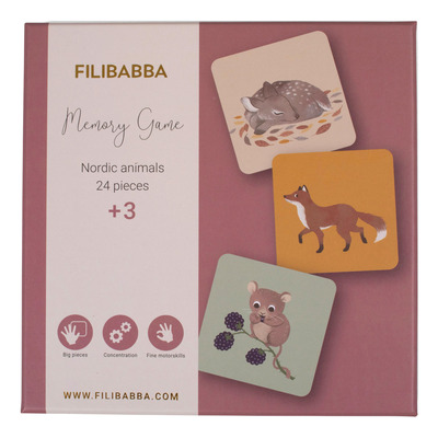 Filibabba Nordic Animals er den perfekte kombinasjonen av morsom og lærerik underholdning, designet for å styrke barnets hukommelse, gjenkjenning og konsentrasjonsevne. Med 24 brikker prydet med fargerike, håndtegnede illustrasjoner av nordiske dyrevenner byr dette vendbare spillet på en spennende utfordring som vil engasjere og glede barn i alle aldre. Passer for barn fra 3 år og oppover. Dette spillet vil raskt bli en favoritt for hele familien og legge grunnlaget for mange morsomme stunder sammen.