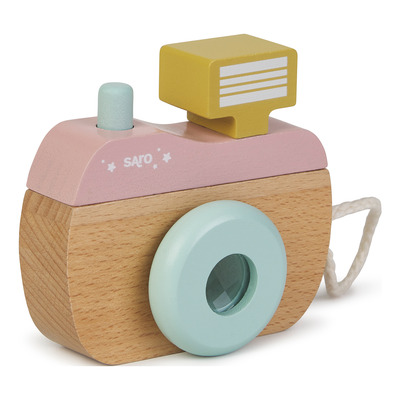 SARO BABY Wooden Camera - Pink er et morsomt kamera som er perfekt for å utvikle barnets kreativitet og fantasi.