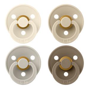 Den klassiske BIBS Colour Latex-smokken i fargene Ivory, Sand, Vanilla og Dark Oak