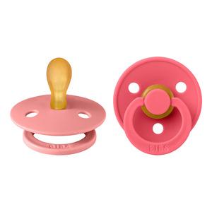 BIBS Colour Latex Dusty Pink/Coral er en 2-pakning med symmetriske smokker i naturgummi som fremmer sugeteknikken