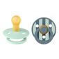 BIBS Studio Colour Block Latex Nordic Mint Petrol Mix kombinerer funksjonalitet med skandinavisk design i denne 2-pakningen med kvalitetssmokker. Smokken er laget av naturgummilateks og er utstyrt med en unik ventil som slipper ut luft, slik at den tilpasser seg barnets munnform på en naturlig måte. Denne funksjonen bidrar til en sunn utvikling av munnhulen.