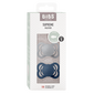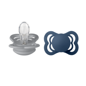 Disse BIBS-smokkene er en del av BIBS Supreme-kolleksjonen. Dette er en eksklusiv smokk med et bredt skjold og store hull på begge sider, som minimerer kontakten med huden. BIBS Supreme-smokken er laget med en symmetrisk, flat og dråpeformet sutt som er perfekt for babyer som foretrekker en flatere smokk. Supreme-smokkene er laget med en sutt i silikon med mønster, noe som gjør silikonet sterkere og mer motstandsdyktig. BIBS Supreme-smokkene leveres også med en sutt av naturgummi.