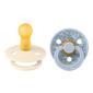 BIBS x Liberty Colour Latex Round Eloise i Dusty Blue Mix er en 2-pakning med elegante sutter i naturgummi