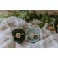 FRIGG Little Viking smokkene hyller den norrøne mytologien og våre skandinaviske røtter. Smokkens skjold er laget av polypropylen og er inspirert av vikingenes runde skjold. De er dekorert med Fehu-symbolet fra runealfabetet, som står for fruktbarhet og åndelig rikdom. Smokkene har et rundt smokkehode som er laget av 100 % naturgummi. Little Viking-kolleksjonen er designet for å gi en følelse av beskyttelse og trygghet for små, nysgjerrige og modige barn.