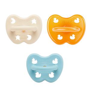 Hevea Trial Trio-Pack har 3 smokker med kjeveortopedisk, rund og symmetrisk form, slik at det finnes noe for babyen.