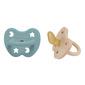 Hevea Orthodontic smokker er utviklet for babyer og småbarn fra 3 til 36 måneder. Disse smokkene er usedvanlig myke og laget av 100 % naturgummi. De er fri for BPA, PVC, plast og ftalater, noe som garanterer et trygt og naturlig valg for babyen din. Den kjeveortopediske formen på smokken er skånsom mot barnets munn, samtidig som den støtter tungens plassering og minimerer risikoen for tannråte. Med FDA-godkjente fargepigmenter er Hevea smokkene også estetisk tiltalende med fargene Sand & Ocean Blue.
