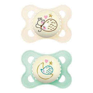 MAM Original Night Silikonsmokk Hvit/Grønn 0-6 mnd - 2 stk.
