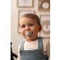Smokkens MAM SkinSoft-silikonoverflate føles ekstra myk og behagelig, noe som gjør det lettere for barnet å akseptere smokken. De store lufthullene i skjoldet sørger for god luftsirkulasjon og reduserer risikoen for hudirritasjon, mens den delikate fargen gir smokken et stilrent og sofistikert utseende.