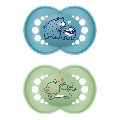 MAM Original naturgummismokk 16-36 mdr. i fargen blå/grønn