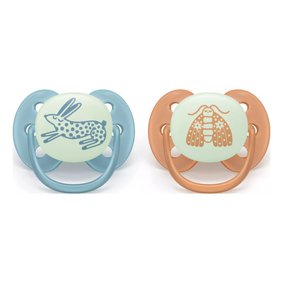 Avent Pacifier ultra soft Nighttime - blå og oransje - 2 stk.