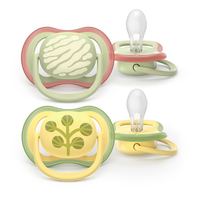 Philips Avent Ultra Air 18m+-smokken har et lett skjold med ekstra store lufthull som gir god ventilasjon og holder huden tørr under bruk. Den kjeveortopediske utformingen bidrar til å redusere risikoen for skjevstilling av tenner og tannkjøtt. Skjoldet er laget av 80 % plantebasert materiale. Pakken inneholder to smokker i grønt og gult med motiv og en oppbevaringsboks som også fungerer som sterilisator.