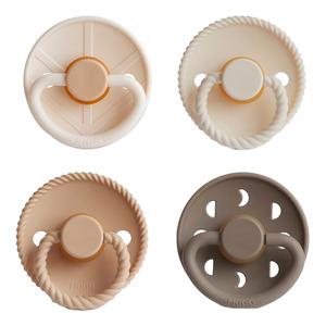 FRIGG Round Latex Size 2 Crystal Sparkle er en 4-pakning med runde smokker i vinterinspirerte farger