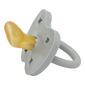 De fine smokkene fra danske Hevea er fremstilt i 100 % bærekraftig naturgummi utvunnet fra gummitreet Hevea Brasiliensis. I tillegg er de farget med FDA-godkjente naturfargepigmenter. Skjoldet er ergonomisk formet så det er god plass til nesen og haken til barnet.