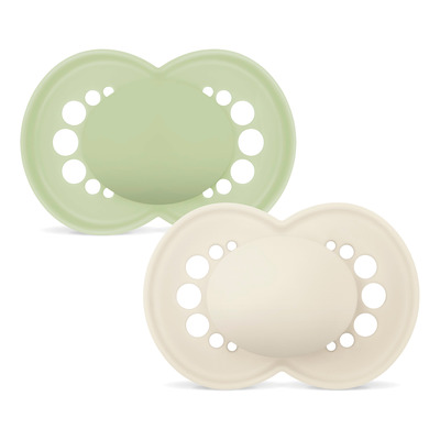 MAM Original Silk 6-16m Box Green er en myk og hudvennlig smokk laget av miljøvennlige materialer