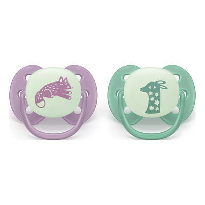 Avent Pacifier ultra soft Nighttime - lilla og grønn - 2 stk.