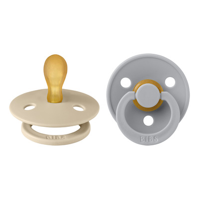 BIBS Colour Latex Symmetrical Vanilla/Cloud er en 2-pakning med smokker som fremmer en sunn oral utvikling og gir komfort.