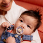 Denne 2-pakningen med smokk er tilgjengelig i to størrelser. Størrelse 1 passer for babyer i alderen 0-6 måneder, mens størrelse 2 passer for babyer over 6 måneder.