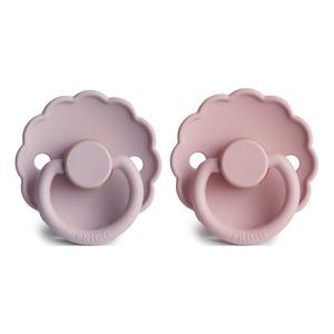 Denne 2-pakningen med smokker fra FRIGGS Daisy-kolleksjonen har et lateksskjold som etterligner blomsterblader. Ideen om et blomsterlignende og detaljorientert design fanger oppmerksomheten til den stilbevisste mammaen. Smokken er et perfekt eksempel på hvordan mote møter funksjonalitet. Smokkene har både et elegant design og er utviklet for å passe til det fysiologiske stadiet barnet befinner seg i. FRIGG Daisy har en rund tut som ligner mammas bryst i både form og materiale. Dette er en fordel fordi babyen skaper et vakuum med tungen rundt både mors bryst og smokken.